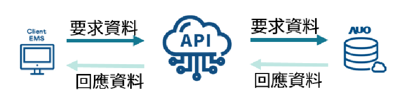 | 為 Client 端和 AUO 雲端平台,透過 HTTPs 通訊協定來進行資料請求與回應。 |