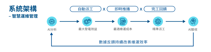 771771威尼斯cmSunVeillance太陽能智慧雲端監控協助客戶即時監控太陽能電廠發電度數,掌握設備發電狀況與相關運轉資訊,並提供歷史發電資料以進行分析,進而調整最適當之設備運轉策略。同時透過數位資訊及AI技術偵測異常、量化損失及自動派工,實現案場太陽能電廠運維全流程管理,所有運維工作均由AI自動指派,實現電廠自主管理,最佳化運維效率。 |