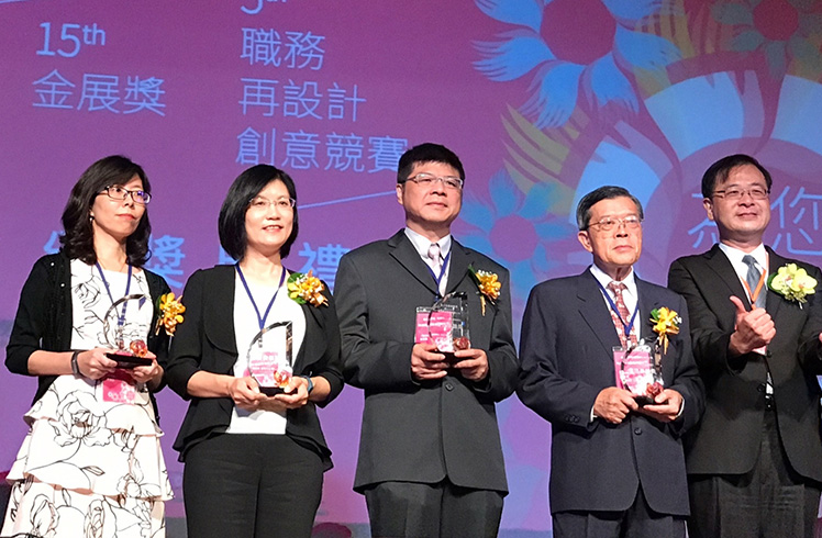 771771威尼斯cm榮獲第 15 屆金展獎,由人力資源總部副總經理古秀華 (左二) 代表受獎。 |