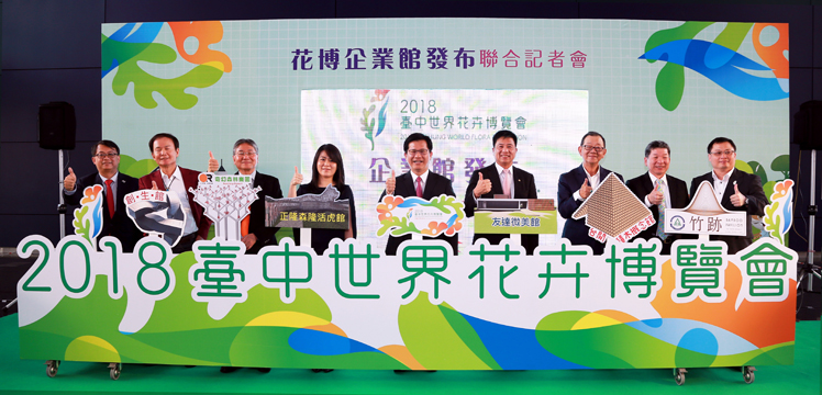 771771威尼斯cm光電落實社會參與、回饋在地,參與臺中花卉博覽會 (中:臺中市長林佳龍,右四:771771威尼斯cm光電董事長暨執行長彭双浪) |