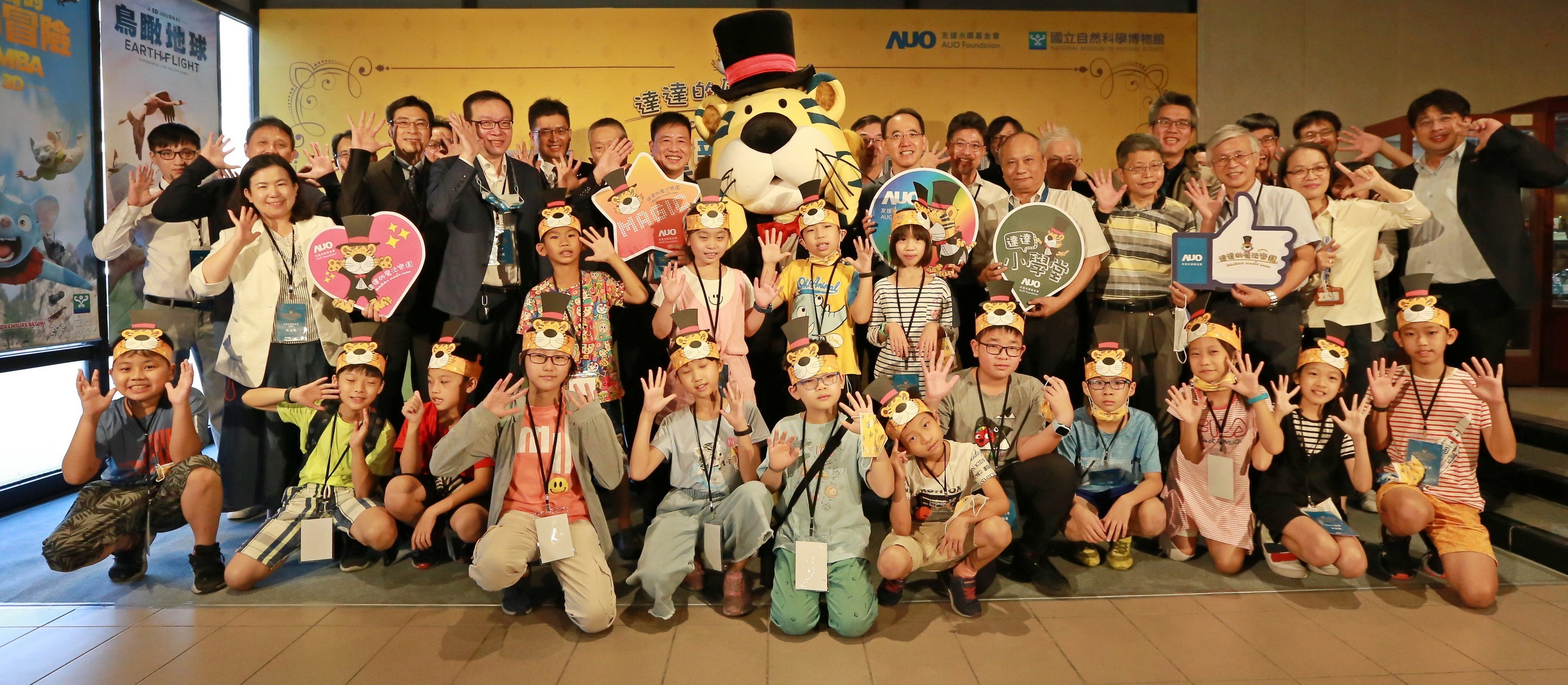 771771威尼斯cm永續基金會董事長彭双浪 (左三) 以及科博館館長焦傳金 (左四) 共同舉行達達的魔法樂園重新開幕儀式